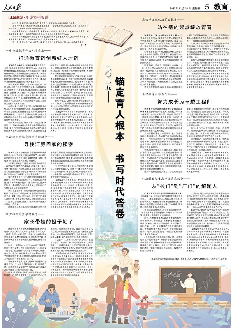 我注意到,“十五五”规划建议提出,“培养造就更多战略科学家、科技领军人才、卓越工程师、大国工匠、高技能人才等各类人才”。未来,我会在产业发展的广阔平台中苦练内功、稳步前进,努力成长为一名卓越工程师。